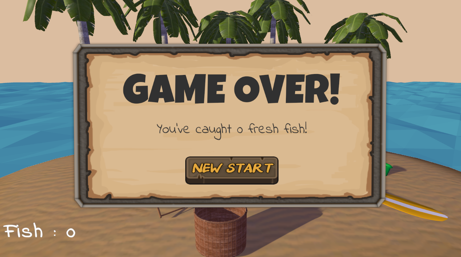At this point, when the game ends, the “Game Over” text appears, but the birds and fish still spawn, and the score continues to update. In other words, everything keeps running. To fix this, I added a boolean variable called isGameActive to track whether the game is active or over.
