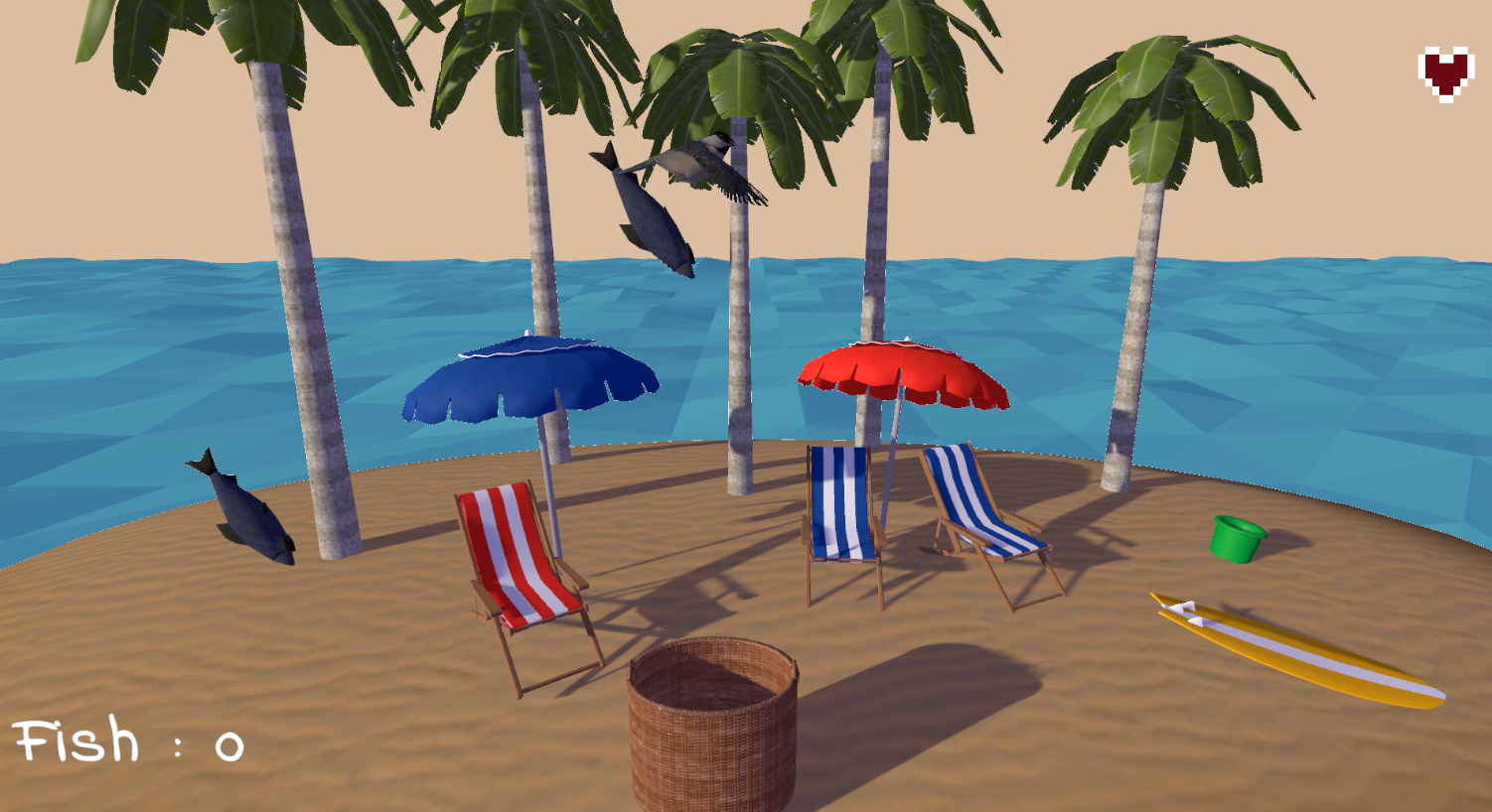 In addition to rotating the camera, I had previously adjusted the rotation of the light object to better illuminate the island. After setting up the scene, I returned the light’s rotation to its original position for the gameplay screen.